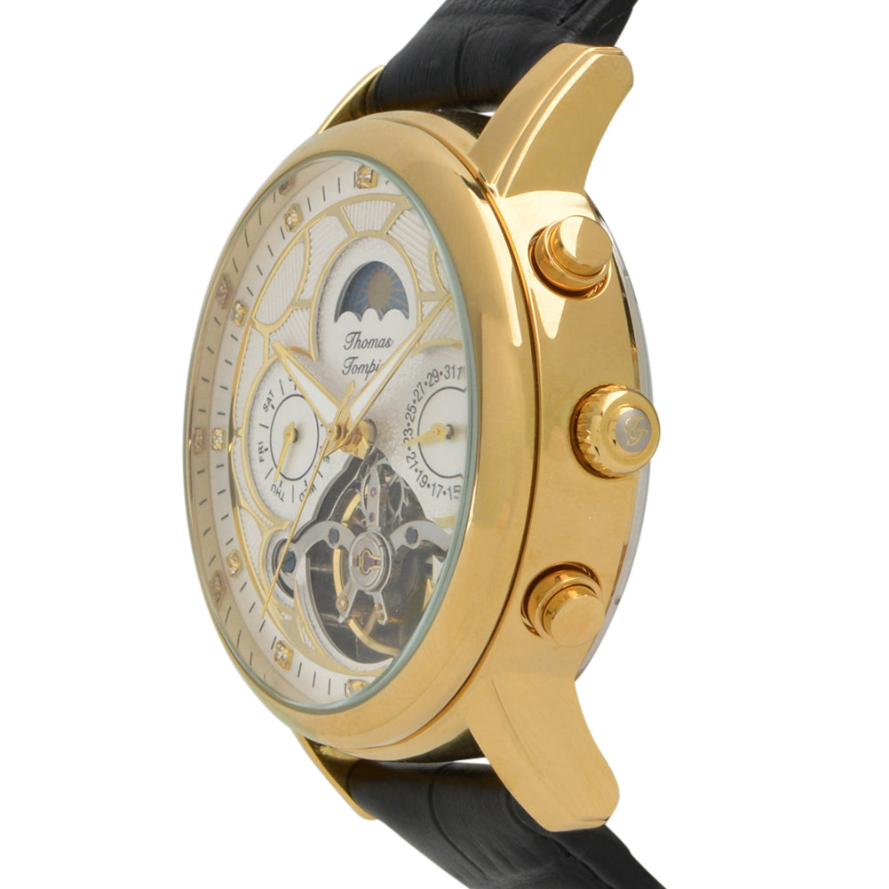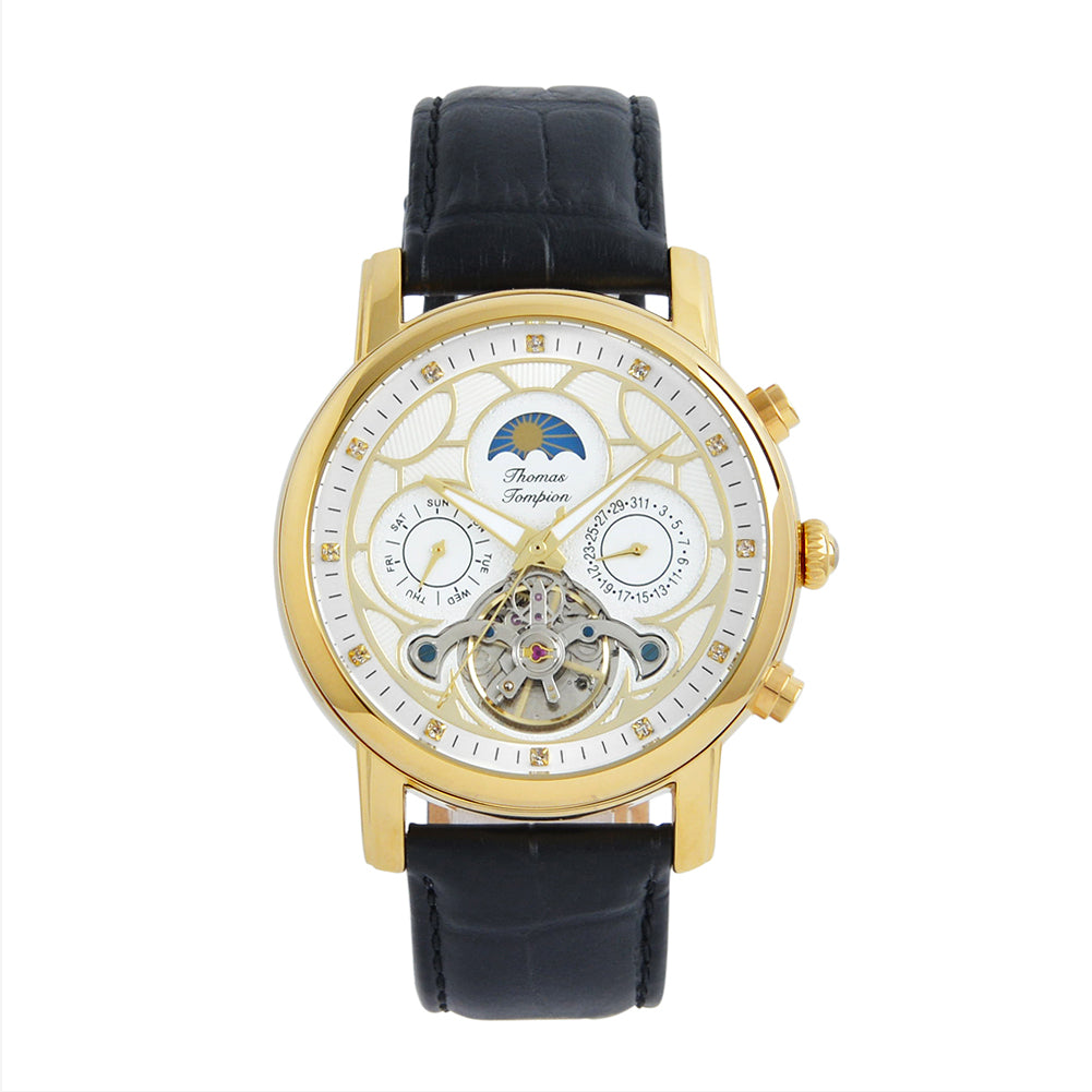 - Moon Phase subdial; Day subdial; Date subdial